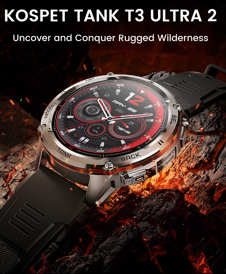 ساعت هوشمند کاسپت Tank T3 Ultra2 با طراحی مقاوم و شیک، ترکیبی از استایل و دوام را ارائه میدهد. بدنه این ساعت از جنس فلزی با کیفیت بالا ساخته شده که مقاومت زیادی در برابر ضربه و خط و خش دارد. طراحی ضد آب این ساعت با استاندارد IP69K، اطمینان از عملکرد قابل اعتماد در شرایط مختلف آب و هوایی را فراهم میکند.