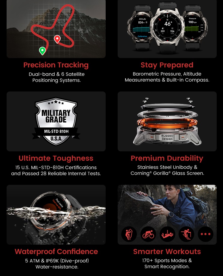 - جیپیاس داخلی: ساعت هوشمند کاسپت Tank T3 Ultra 2دارای جیپیاس داخلی دوبانده است که به کاربران امکان میدهد مسیرهای خود را به دقت دنبال کنند و در فعالیتهای ورزشی مانند دویدن و دوچرخهسواری، اطلاعات دقیقی از مسیر و مسافت طی شده دریافت کنند.